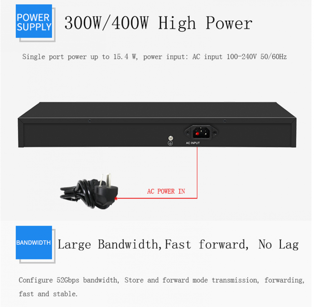 سويتش بي او اي افضل موزع شبكة واي فاي بتقنية نقل الطاقة عبر الايثرنت، 16 منفذ بي او اي، و 2 منفذ فايبر اب لينك، يتميز بالتحويل التلقائي لطاقة بي او اي مع اجهزة بي او اي بتقنية نقل الطاقة عبر الايثرنت، فضلا عن حماية الاجهزة الاخرى غير المعتمدة على تلك التقنية